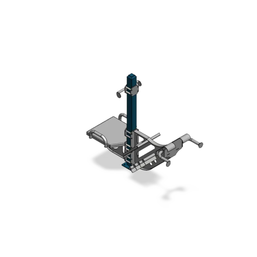 A single-post exercise system with a lower back extension station on one side and a plyo box with support handle on the other.